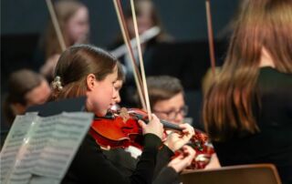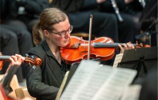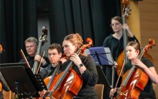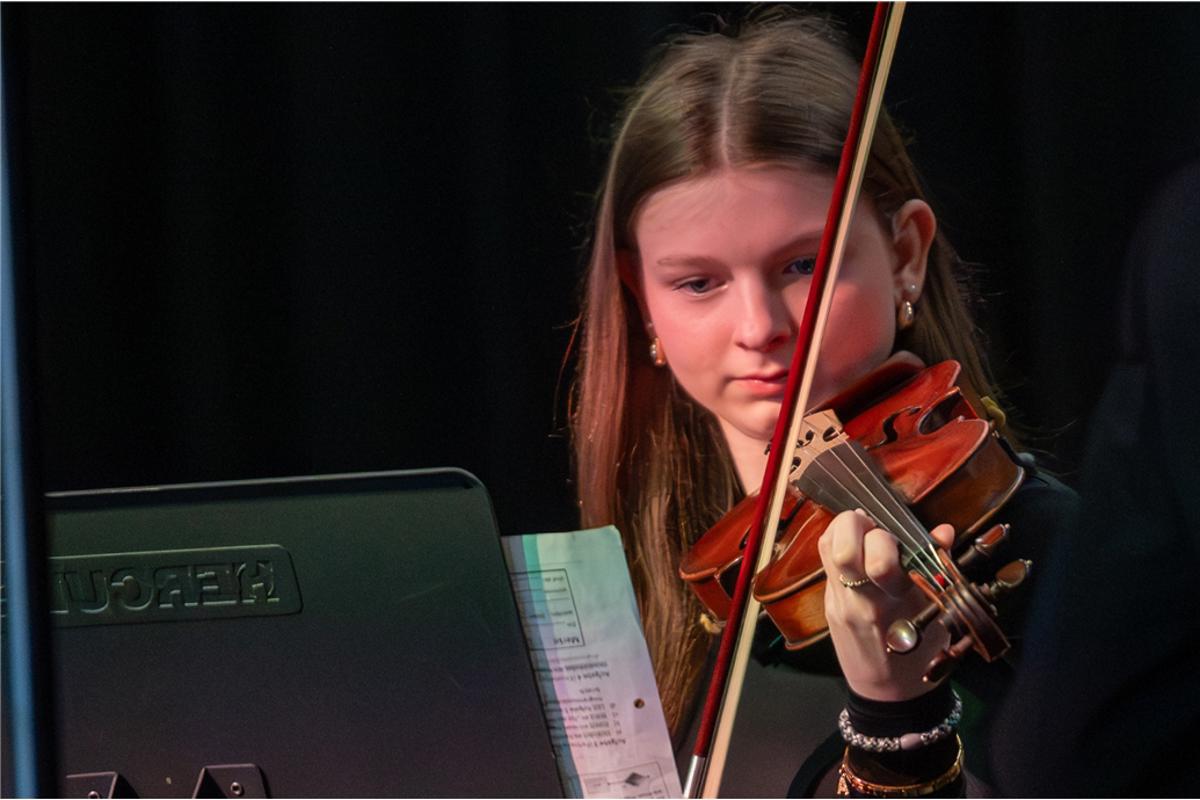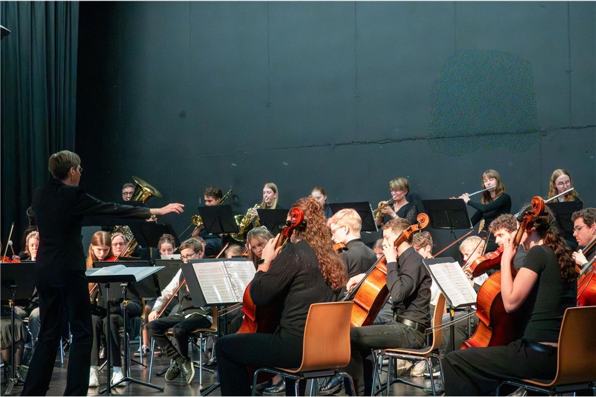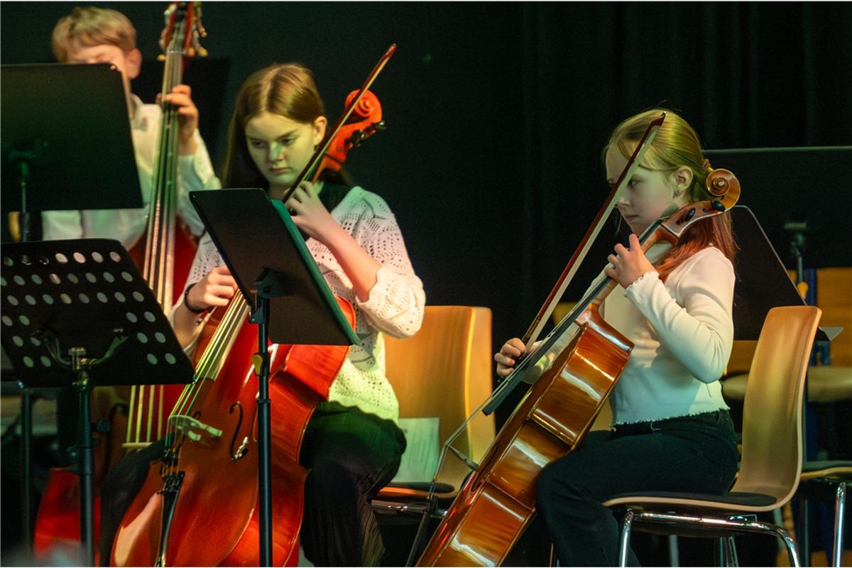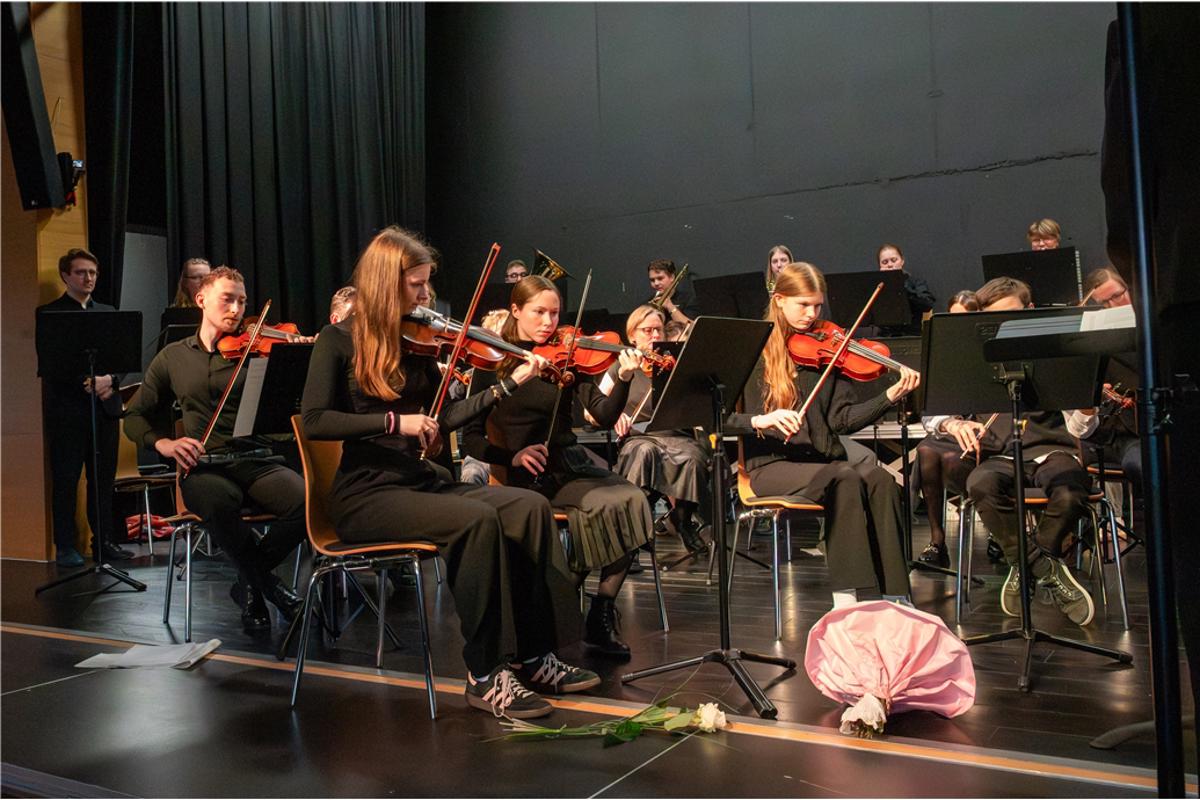 Als Bettina Bartels im Jahr 2001 an die Schule kam, gab es zwar bereits eine Bigband und mehrere Chöre, ein Orchester jedoch fehlte. Mit viel Einsatz und Weitblick begann sie, erste Strukturen aufzubauen – zunächst mit wenigen Mitwirkenden. Sie initiierte Geigenunterricht an der Schule, gewann nach und nach weitere Schülerinnen und Schüler für das gemeinsame Musizieren und legte so den Grundstein für eine Entwicklung, die vom ersten Konzert bis zum gefeierten Jubiläumsauftritt am vergangenen Sonntag reicht.