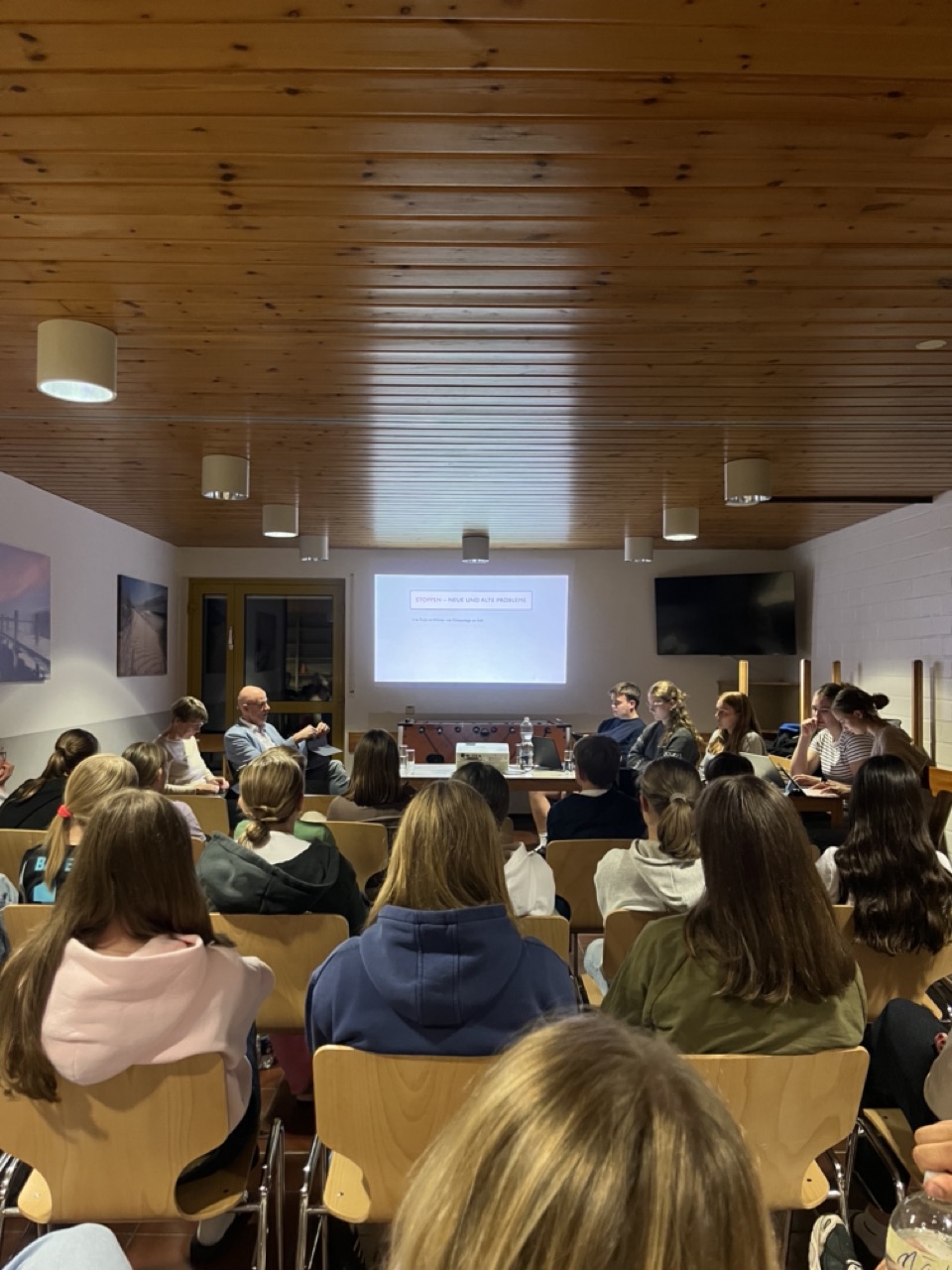 Neben der Schulleitung stattete auch Herr Pohlkamp vom Förderverein der Gruppe einen Besuch ab. Er hörte sich die Wünsche und Anliegen der Schülerinnen und Schüler an und zeigte großes Interesse an den Projekten. Der Förderverein trägt insgesamt einen wesentlichen Teil zur Umsetzung der Ideen und Vorhaben der Schülerschaft bei und unterstützt insbesondere die Geeste-Fahrt jedes Jahr tatkräftig. So wurde die engagierte Arbeit der SV an diesem Abend unter anderem mit einem gemeinsamen Pizzaessen belohnt.