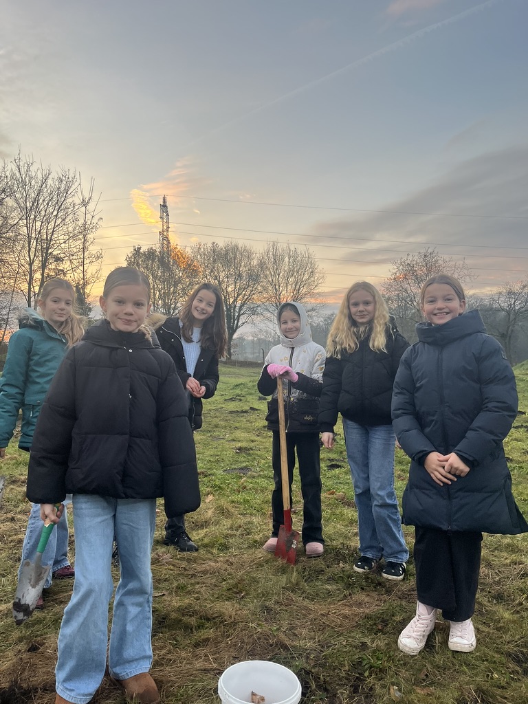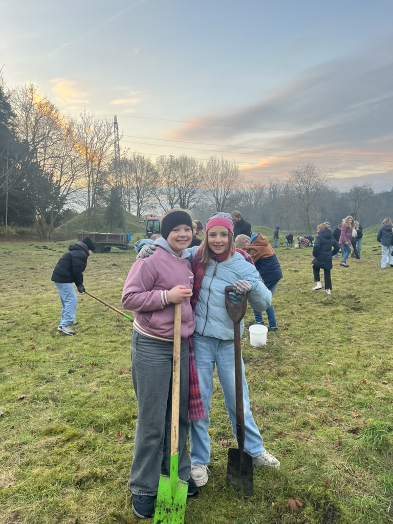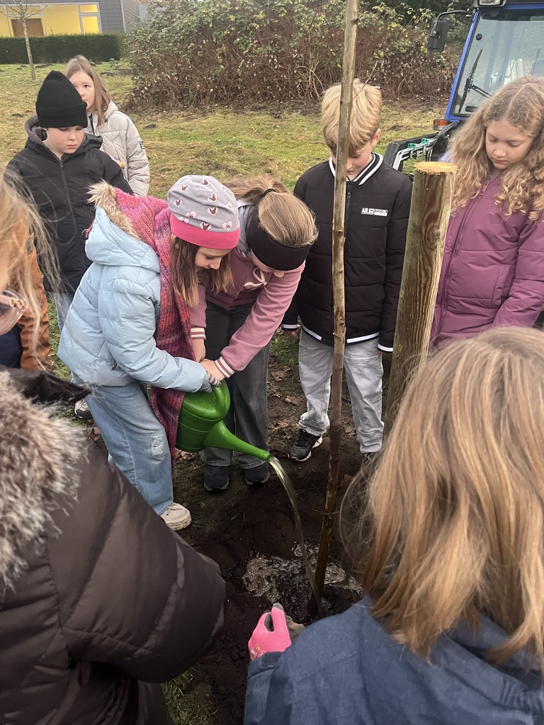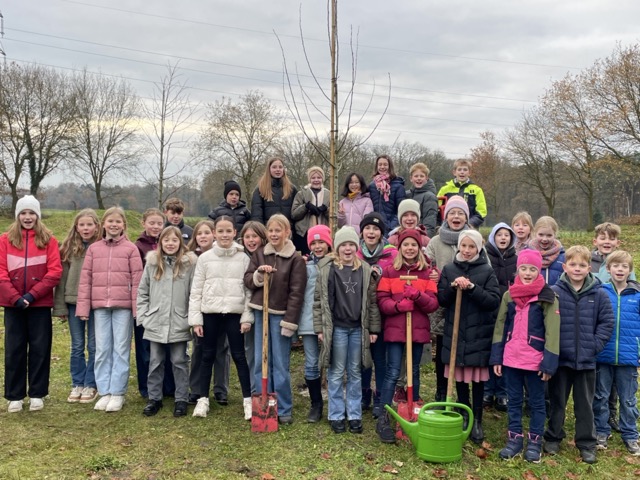 Die Kinder der 5. Klassen hatten großen Spaß am praktischen Tun und sind gespannt, wie schnell die Bäume wachsen.