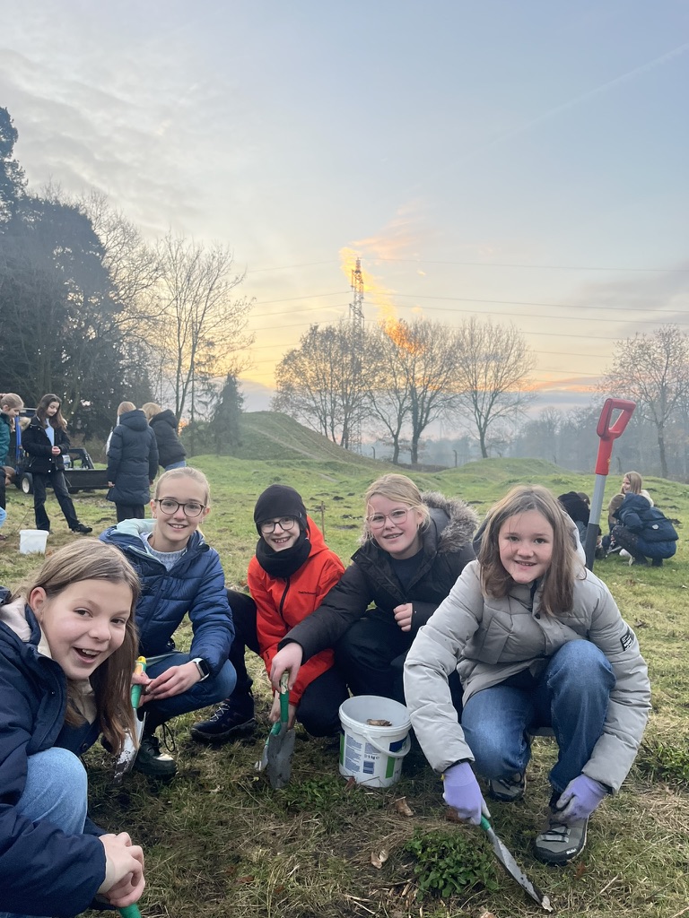 Im November/Dezember durften auch in diesem Jahr alle 5. Klassen etwas für die Artenvielfalt auf unserem Schulgelände tun: Jede Klasse setzte im Biologieunterricht hunderte von Osterglocken und wilden Krokuszwiebeln entlang der Böschung zwischen D-Trakt und Mountainbike-Anlage, die im März in Gelb, Lila und Violett blühen werden. Außerdem pflanzte jede Klasse einen Klassenbaum.