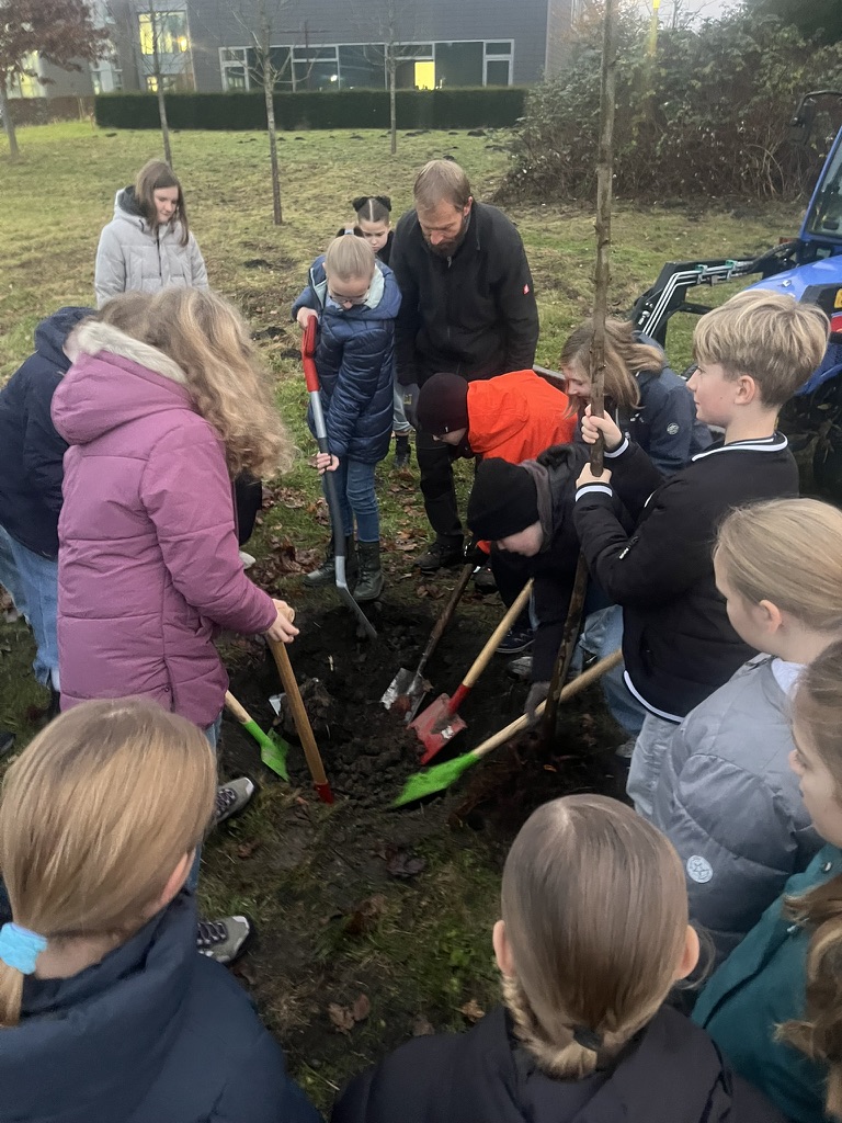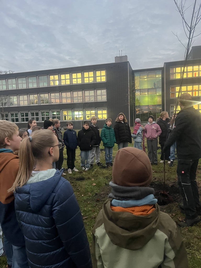 Die 5a pflanzte einen Feldahorn, die 5b einen Eisenholzbaum, die 5c einen Bergahorn und die 5d eine Zitterpappel. Diese Baumarten gelten als klimaresistent und bereichern den Baumbestand auf dem AJG-Gelände, der über 40 verschiedene Arten umfasst. Die Zitterpappel wurde gerade zum Baum des Jahres 2026 gekürt.