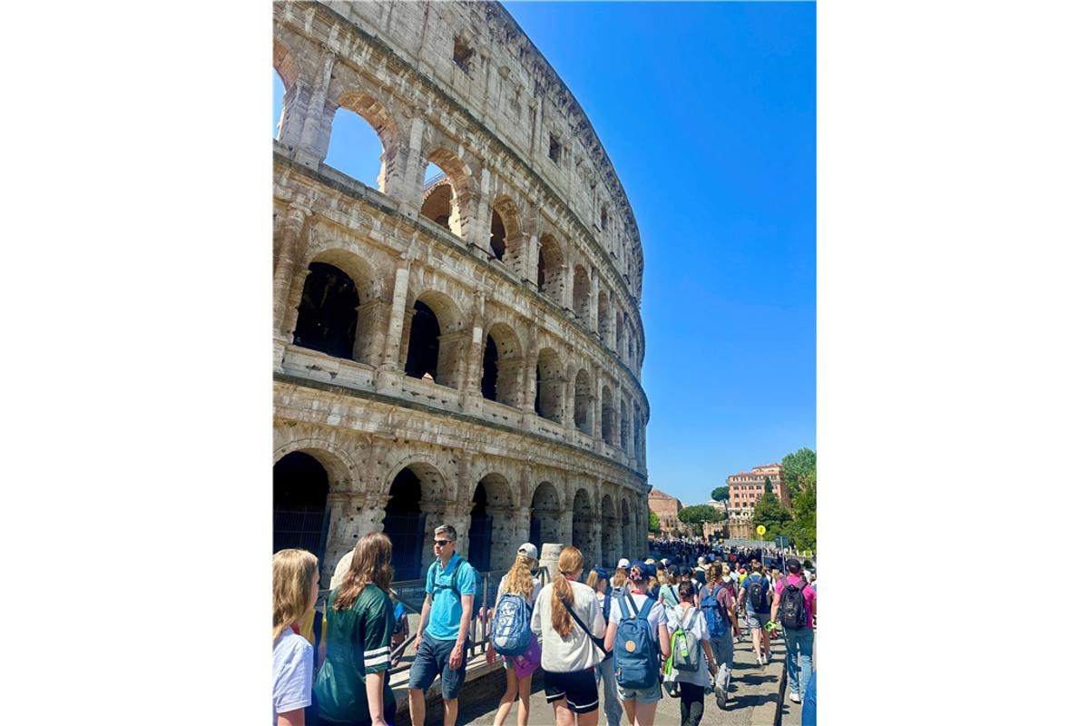 Neben dem Kolosseum stand auch der Besuch des Peterplatzes und der Kirche San Giovanni in Laterano auf dem Plan. In dieser erlebte die Schulgemeinde einen Gottesdienst gemeinsam mit Weihbischoff Christoph Hegge.