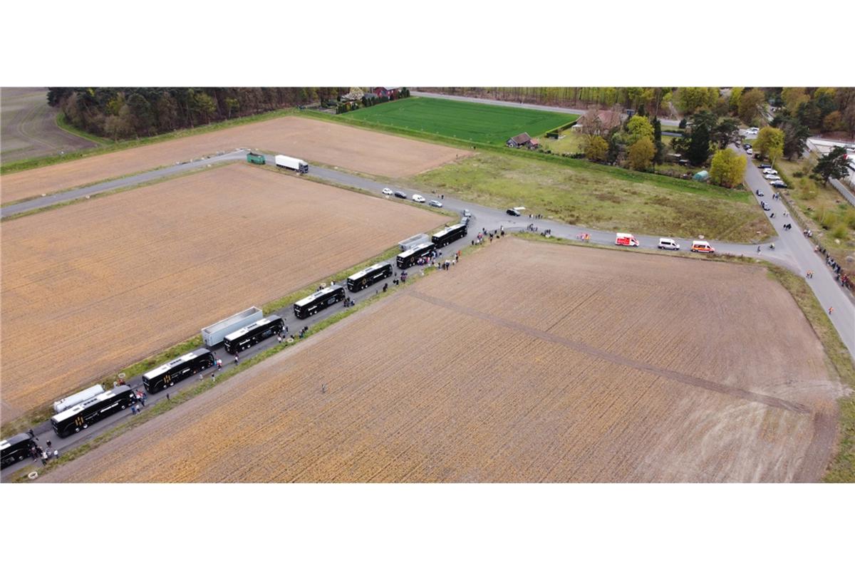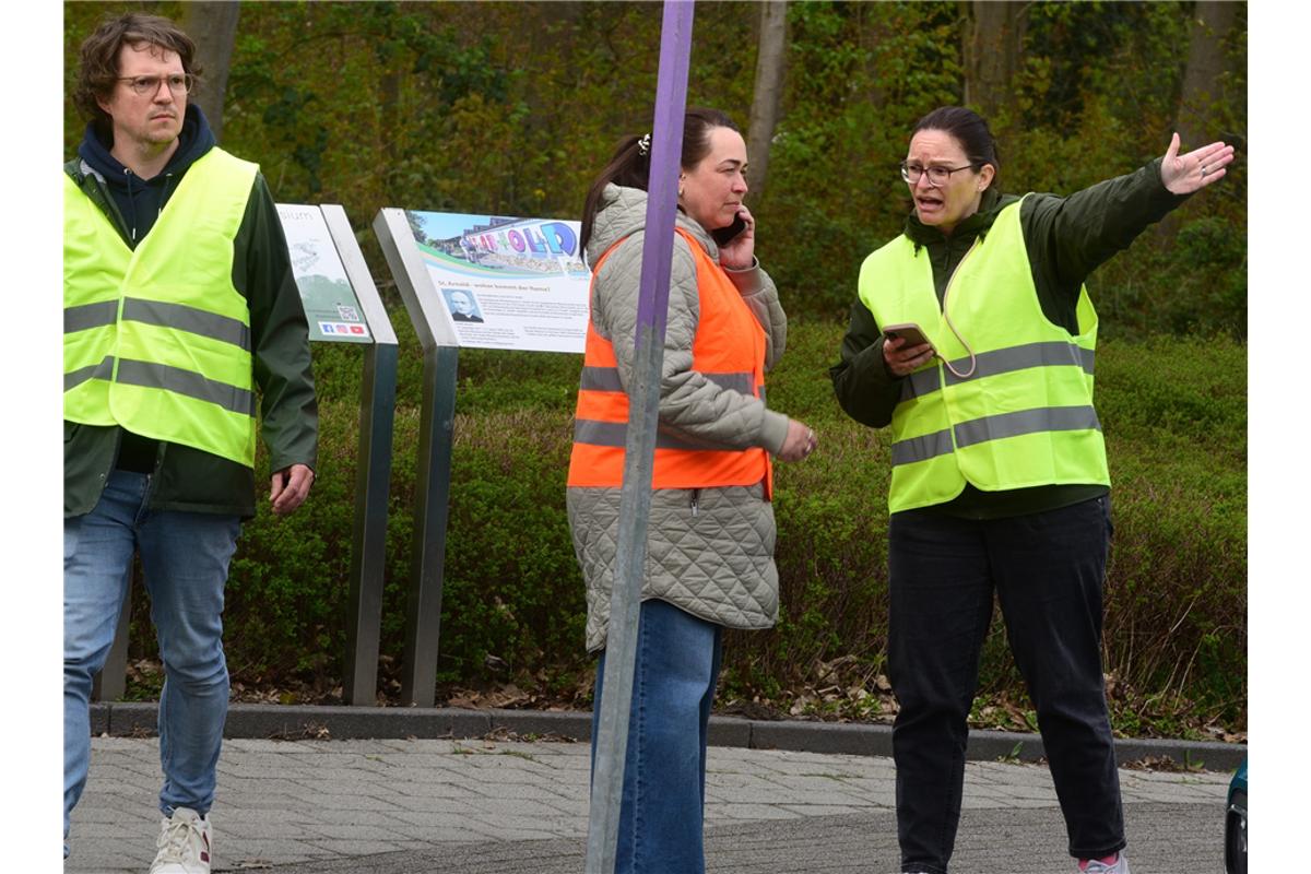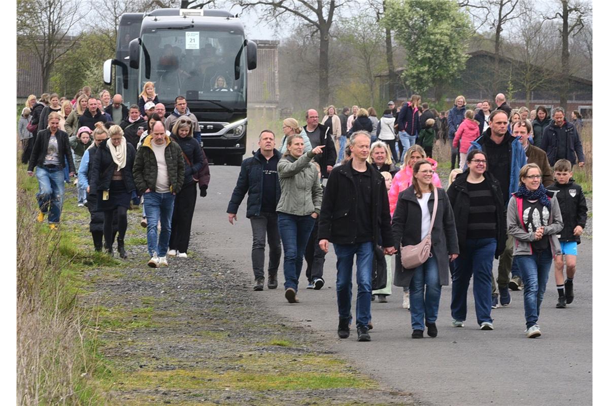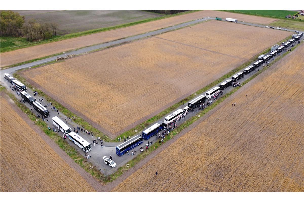 Dörhoff und Stellvertreterin Ruth Janning freuen sich sehr über den nahezu reibungslosen Ablauf. Alles verlief nach Plan, um 14.30 Uhr trafen die ersten Auto mit Eltern ein, die ihre Kinder zur Abfahrt brachten. Da wurde es schon ein wenig voll an der Emsdettener Straße. Genügend Platz zum Parken war trotzdem da. Um 15 Uhr machten sich dann alle zur Abfahrt bereit. 23 Reisebusse standen in einer Schlange auf der Ackergelände neben der Firma Sun Garden. Auf einer Strecke von rund 400 Metern reihten sich die Fahrzeuge auf, mit denen es ab nach Rom ging.Bevor die Reisebusse sich aber in Bewegung setzten, nahm sich Pfarrer Markus Thoms die Zeit, für alle Busse einen Reisesegen auszusprechen. Dörhoff sprach bei der Gelegenheit noch einmal einen großen Dank an alle beteiligten Schülerinnen, Schüler, Lehrkräfte und Eltern aus. Dann ging es endlich los, alle stiegen ein und die Busse setzten sich nach und nach in Bewegung. Eine letzte Gelegenheit bot sich für die Eltern, ihren Kindern zu winken, dann waren sie auch schon auf der Straße. Jetzt heißt es erst einmal „Gute Fahrt“. Knapp 24 Stunden dauert die Fahrt zum Campingplatz bei Rom, wo die Schulgemeinschaft bis zum kommenden Montag unterkommen wird.