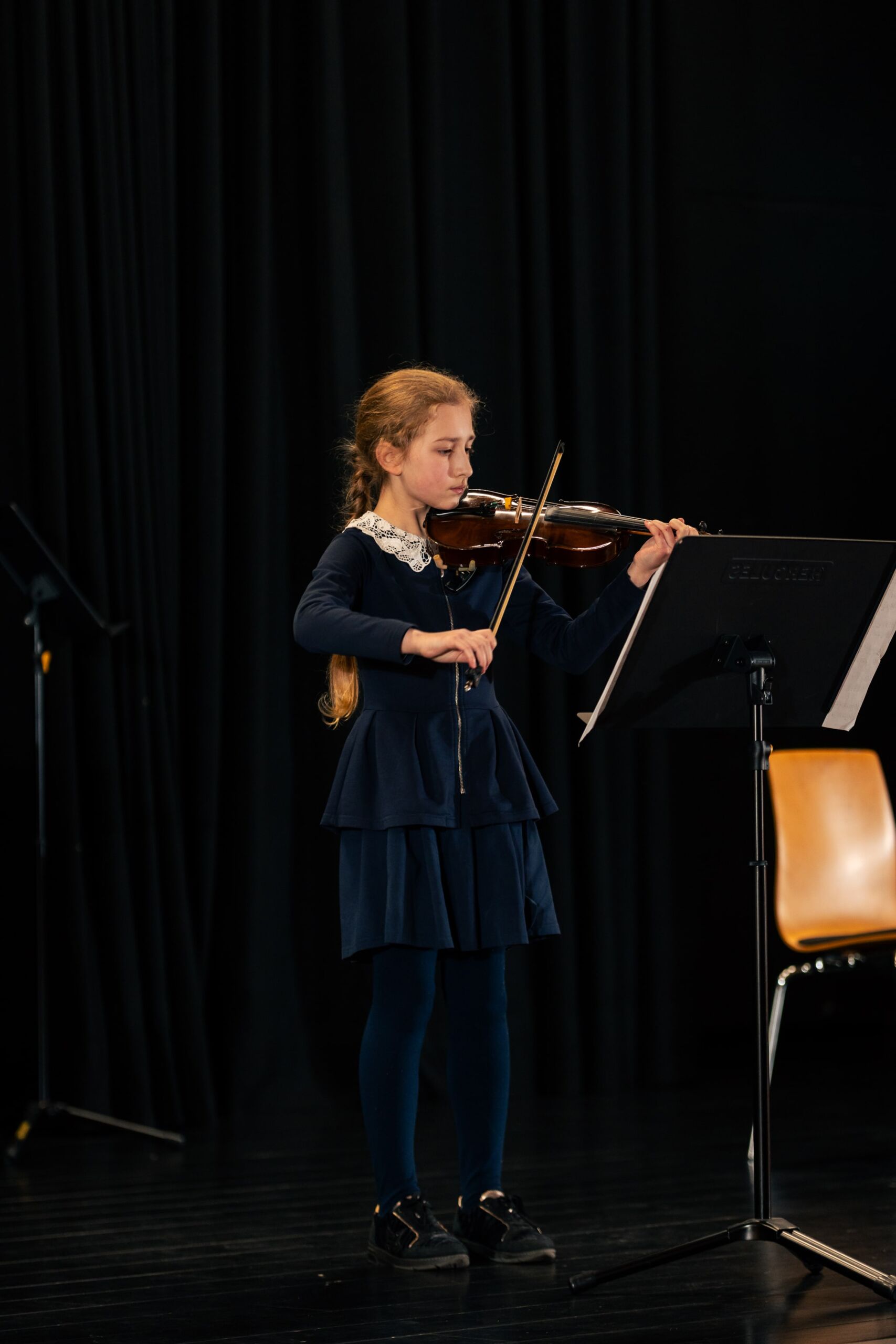 Mit beachtlicher Geläufigkeit und viel Elan folgte Mozarts berühmter türkischer Marsch, gespielt von Joost Mühle (8d). Ebenso rasant ging es weiter mit dem Elfentanz des Komponisten Jenkinson von Justus Bartels auf der Violine.