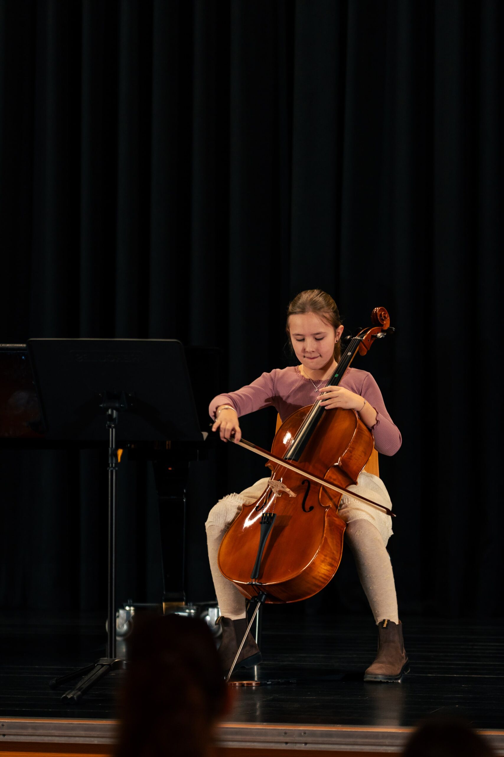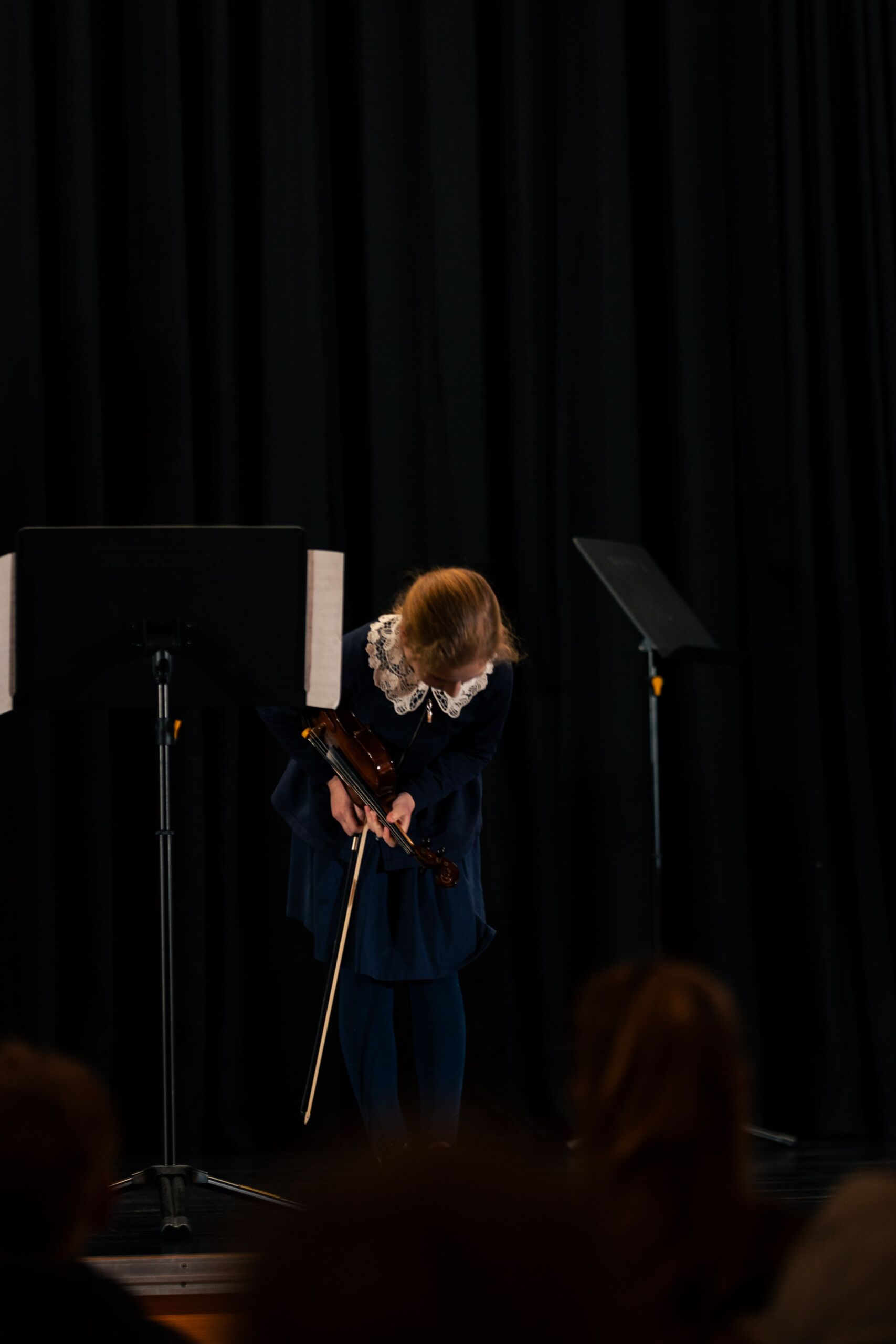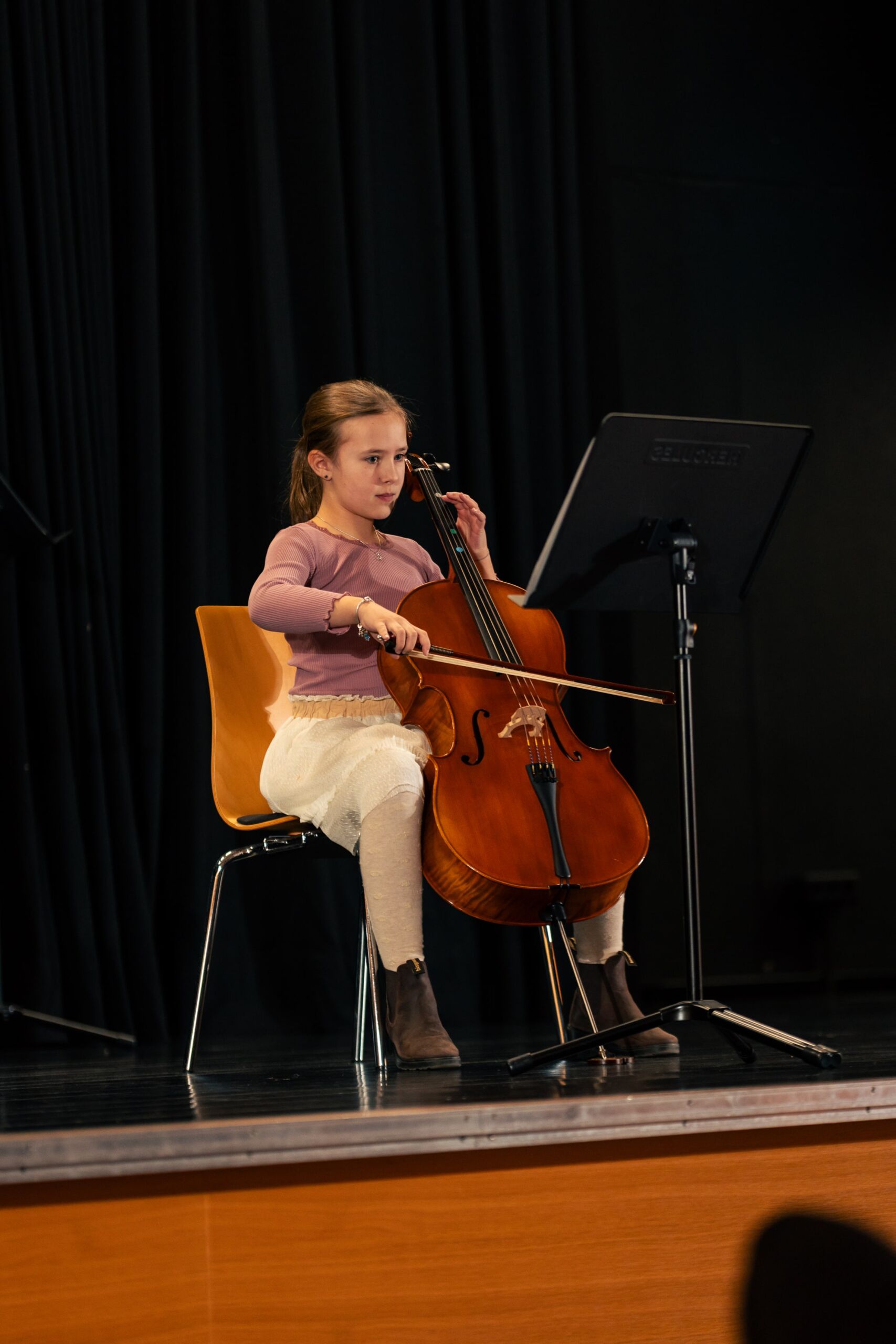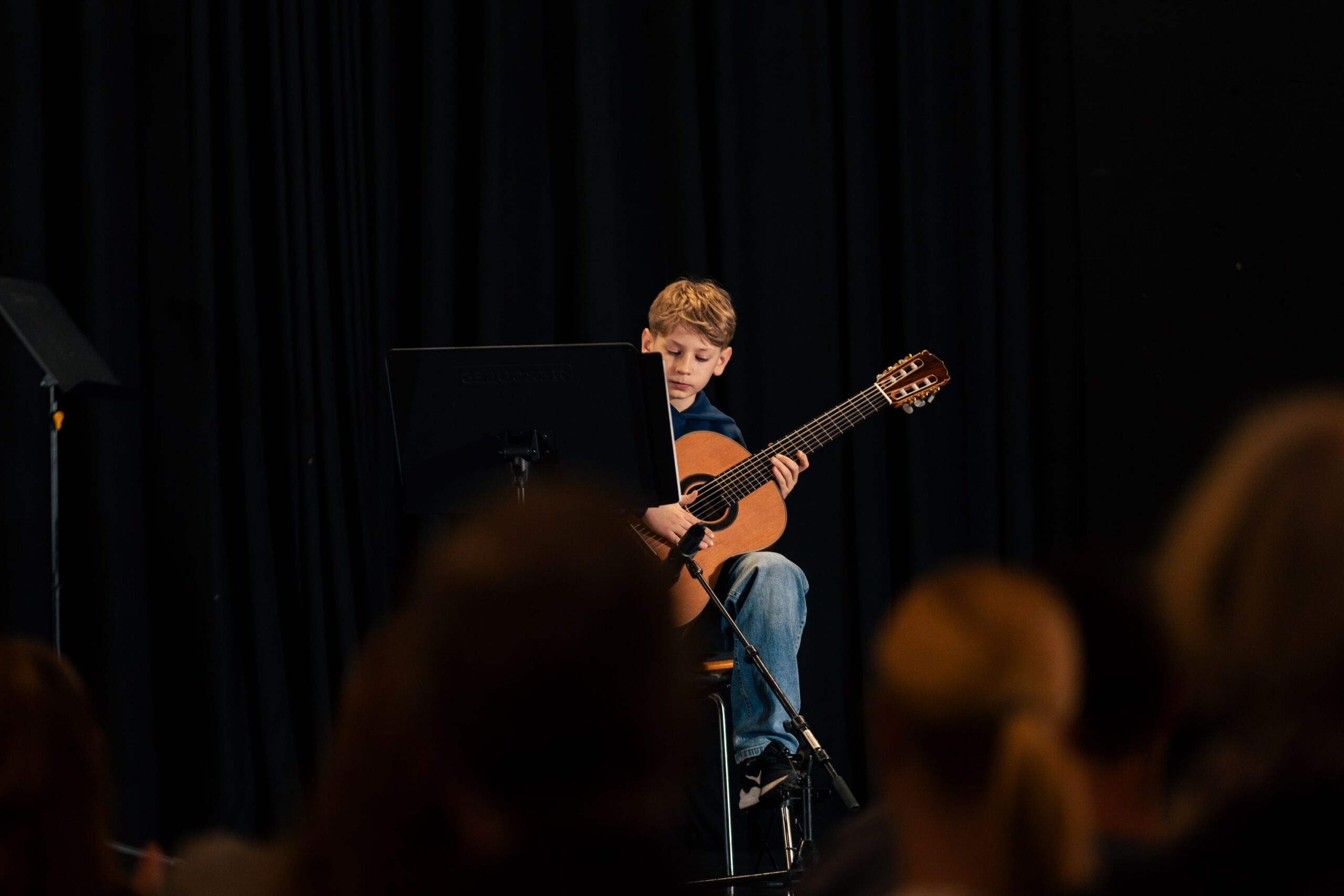.Den Anfang machten zwei Schülerinnen der Jahrgangstufe 5, die an diesem Abend ihre persönliche Premiere am AJG hatten: Frieda Heuring (5c) spielte sicher und mit schönem Klang eine Mazurka von Holzer-Romberg auf dem Cello und Sofia Basenko (5a) präsentierte auf der Geige gekonnt den bekannten Jazzwalzer von Schostakowitsch. Marlin Ahlers (6d) trug mit viel Spielfreude eine Sonatine von Clementi auf dem Klavier vor, gefolgt von Moritz Weber (6a), der auf seiner Gitarre das Stück Classical Mood von Szordikowski konzentriert und gefühlvoll darbot. Im Anschluss spielte Justus Bartels (7c) mit viel Gestaltung in Dynamik und Tempo einen Walzer von Chopin für Klavier.