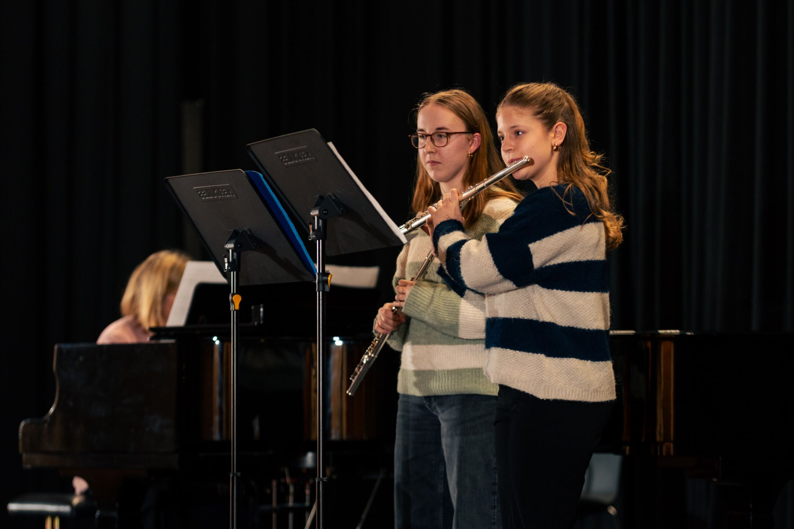 Anschließend erklangen zwei Werke für Querflötenduett: Sophia Weber (8a) und Jemima Link (10a) spielten mit schönem Ton und sehr guter Abstimmung Cantique von Faure sowie The Lord bless you and keep you von Rutter. Es folgte ein träumerischer Walzer von Chopin von Sophia Weber auf dem Klavier.