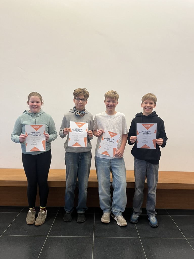 Die Entscheidung fiel der Jury nicht leicht, da alle vier Teilnehmenden starke Leistungen zeigten. Am Ende setzte sich jedoch Henri Banning durch und wurde zum Schulsieger gekürt. Alle vier wurden schließlich für ihre Teilnahme und ihr Engagement geehrt. Für den Sieger geht es nun mit dem Vorlesen eine Runde weiter zum Kreisentscheid.
