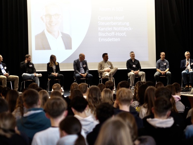 Mehrere Referenten gaben auch sehr persönliche Einblicke in ihren beruflichen Werdegang, wodurch die Vorträge für die jungen Besucher:innen besonders authentisch, praxisnah und inspirierend wurden. Beispielsweise schilderte Christian Spree(Maschinenbau, Firma Krone), wie er nach einer Ausbildung und einem späteren Studium verschiedene Stationen im Unternehmen durchlief – vom Produktcontrolling bis zur Kostenoptimierung. Sein Rat an die Jugendlichen: „Eine Ausbildung kann ein guter Ausgangspunkt sein, um herauszufinden, welcher Weg zu einem passt.“