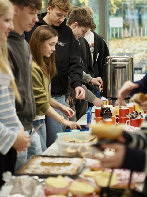 Während der Pause bot die Q1 belegte Brötchen, Kuchen und Getränke an, deren Erlös der Abikasse zugutekommt. Viele Schüler:innen nutzten die Gelegenheit zum Austausch – häufig auch mit der Erkenntnis, dass es völlig normal ist, noch keine konkrete berufliche Vorstellung zu haben. „Ich bin hier reingegangen ohne richtige Idee, was ich später machen möchte, und gehe mit mehreren Ideen wieder heraus“, fasste eine Schülerin aus der EF ihren Eindruck zusammen. Ein Referent brachte es aus seiner Sicht auf den Punkt: „Ein direkter Austausch hilft viel mehr als jede Internetrecherche.“